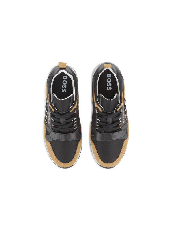Ces baskets BOSS allient style et fonctionnalité avec leur cuir de vachette et toile résistante. Le sigle imprimé sur le côté apporte une touche moderne. La fermeture par lacets assure un bon maintien, tandis que la doublure textile et la semelle intérieure en microfibre garantissent un confort optimal.