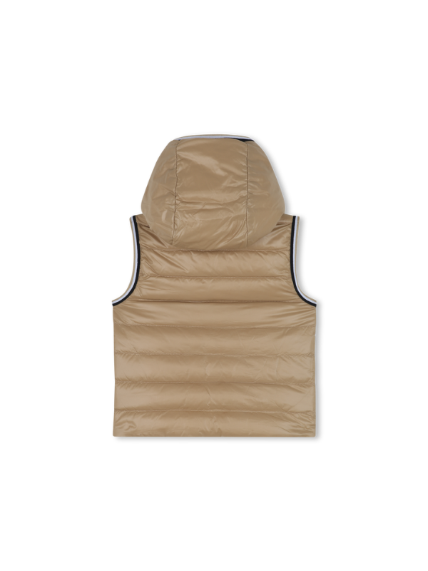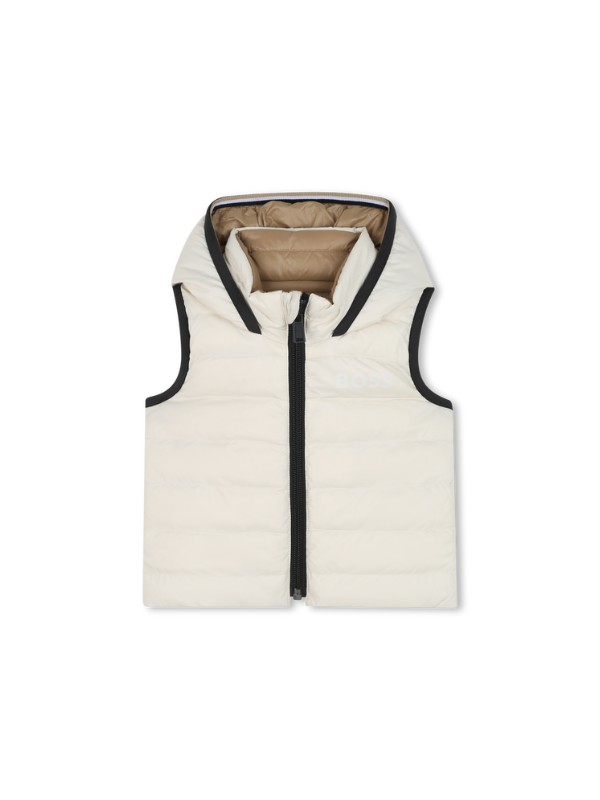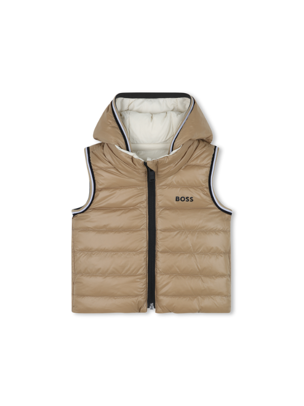 Cette doudoune sans manches BOSS offre deux styles en un grâce à sa conception réversible. Rembourrée, elle garantit chaleur et légèreté. La capuche, les poches sur les deux faces et la fermeture zippée ajoutent à sa praticité. Le logo imprimé à la poitrine et les bandes iconiques au col et aux manches signent un look affirmé.