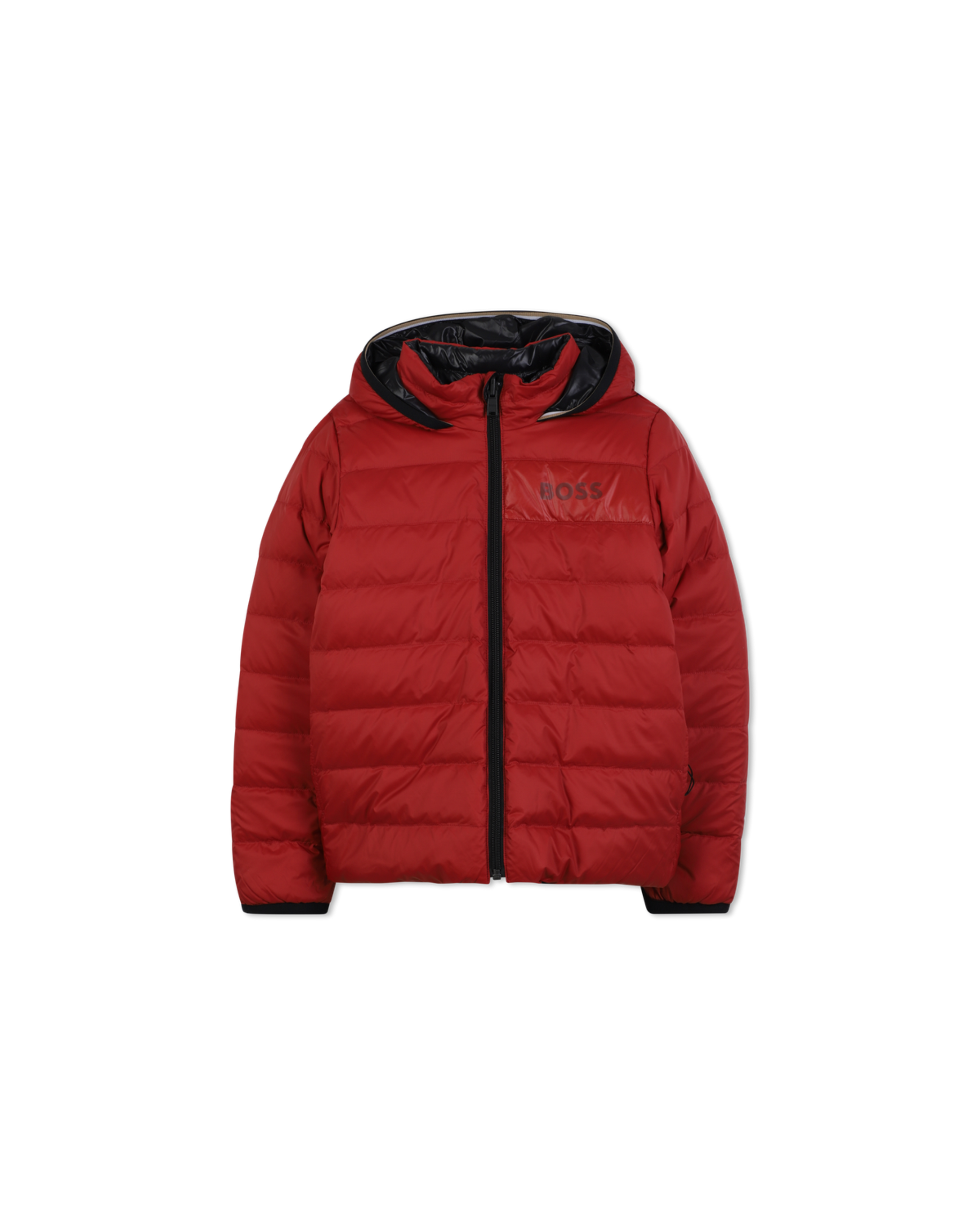 Cette doudoune réversible à manches longues et capuche BOSS, en polyamide, offre deux styles en un grâce à ses deux faces pratiques. La fermeture éclair et les poches latérales apportent une touche de fonctionnalité, tandis que le logo imprimé sur la poitrine, des deux côtés, affiche la signature de la marque. Le rembourrage garantit une chaleur optimale, pour un look moderne et confortable.