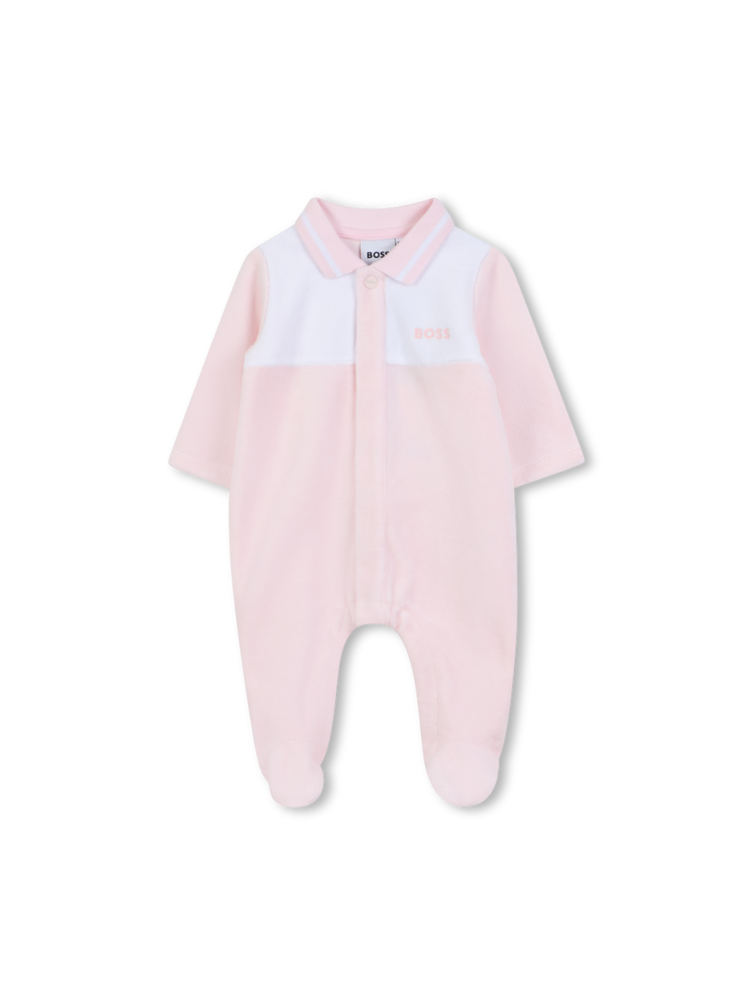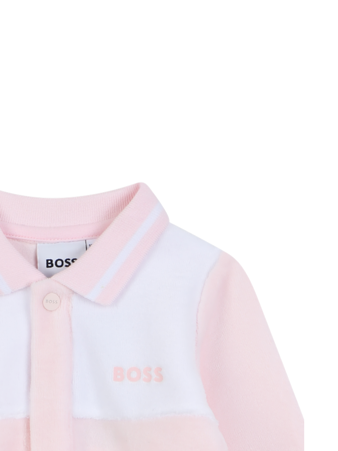 BOSS habille les tout-petits avec tendresse grâce à cette combinaison en velours doux. Sa matière principale contient du coton issu de l'agriculture biologique (voir détail ci-dessous : Traçabilité et Fabrication) elle offre confort et liberté de mouvement. Son col polo rayé et son logo imprimé à la poitrine lui donnent une allure chic dès les premiers jours.
