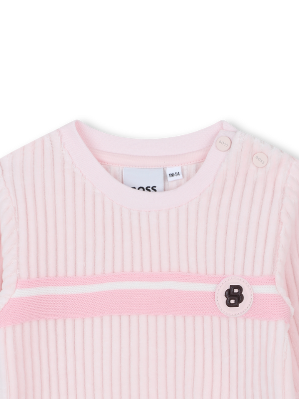 Cette robe BOSS allie douceur et originalité grâce à son velours côtelé rayé. Pratique à enfiler avec son ouverture pressionnée à l'épaule, elle est rehaussée d'une bande tricotée à la poitrine et d'un badge "double B" sur le côté. L'étiquette siglée complète cette pièce à la fois confortable et pleine de caractère optimal pour un look moderne et raffiné.