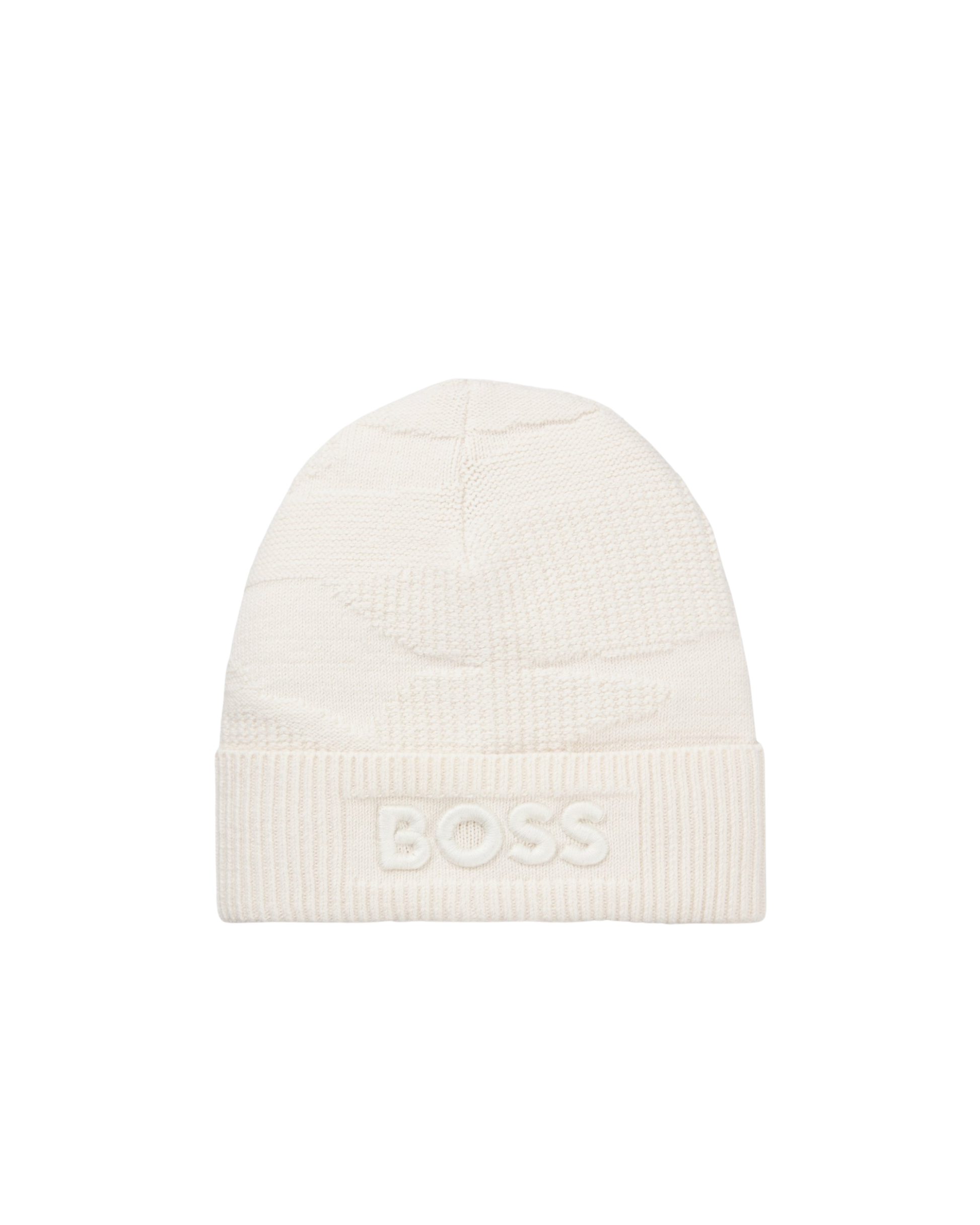 DÉCOUVREZ CE BONNET BOSS POUR BÉBÉ AU STYLE MINIMALISTE ET ULTRA CHIC. SA COULEUR ÉCRU ET SON LOGO BOSS EN RELIEF LUI DONNENT UNE FINITION PREMIUM, PARFAITE POUR COMPLÉTER LES TENUES DE LA SAISON AVEC ÉLÉGANCE.