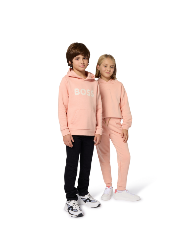 Ce sweat à capuche BOSS, conçu en molleton gratté, allie confort et style. Les découpes sur les manches apportent un détail moderne et dynamique, tandis que le logo BOSS imprimé sur le devant ajoute une touche élégante. Idéal pour un look décontracté et tendance.