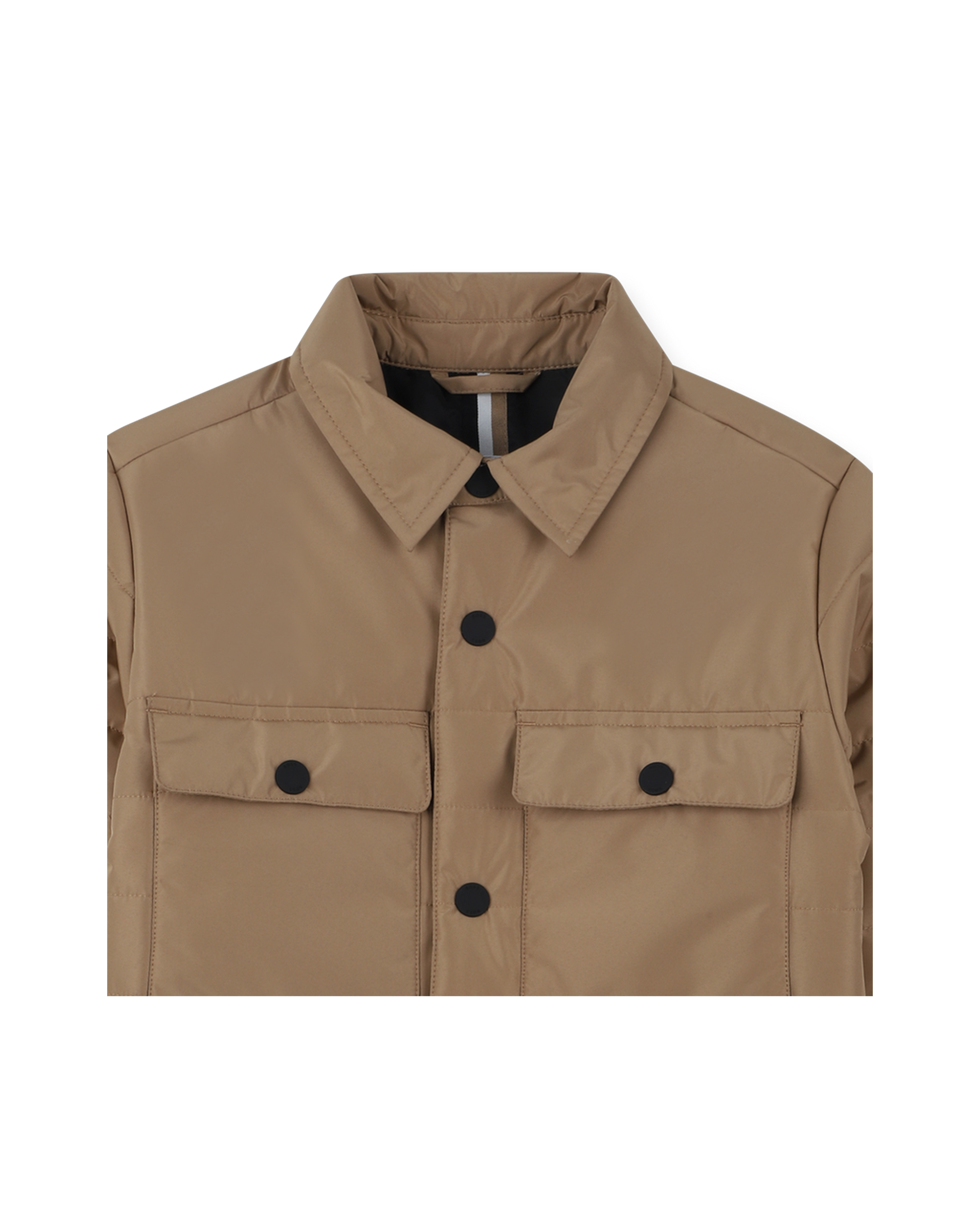 Cette veste BOSS, dont la matière princiaple contient du polyester recyclé (voir détail ci-dessous : Traçabilité et Fabrication), allie style moderne et style. Elle présente deux poches à rabat pressionnées à la poitrine, avec le logo BOSS imprimé sur l'une d'elles, et une fermeture pressionnée pour un look pratique et raffiné. Les deux poches latérales et le col chemise ajoutent une touche de sophistication, tandis que le badge double B en silicone à l'épaule signe ce modèle avec élégance.