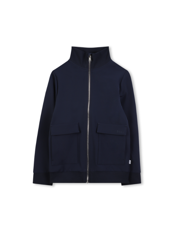 Optez pour ce cardigan de jogging BOSS, conçu pour offrir à la fois style et confort. Le col montant et la fermeture zippée devant assurent un ajustement parfait, tandis que les poches à rabats sur les côtés et le logo BOSS brodé ajoutent une finition élégante et pratique à ce modèle dynamique.